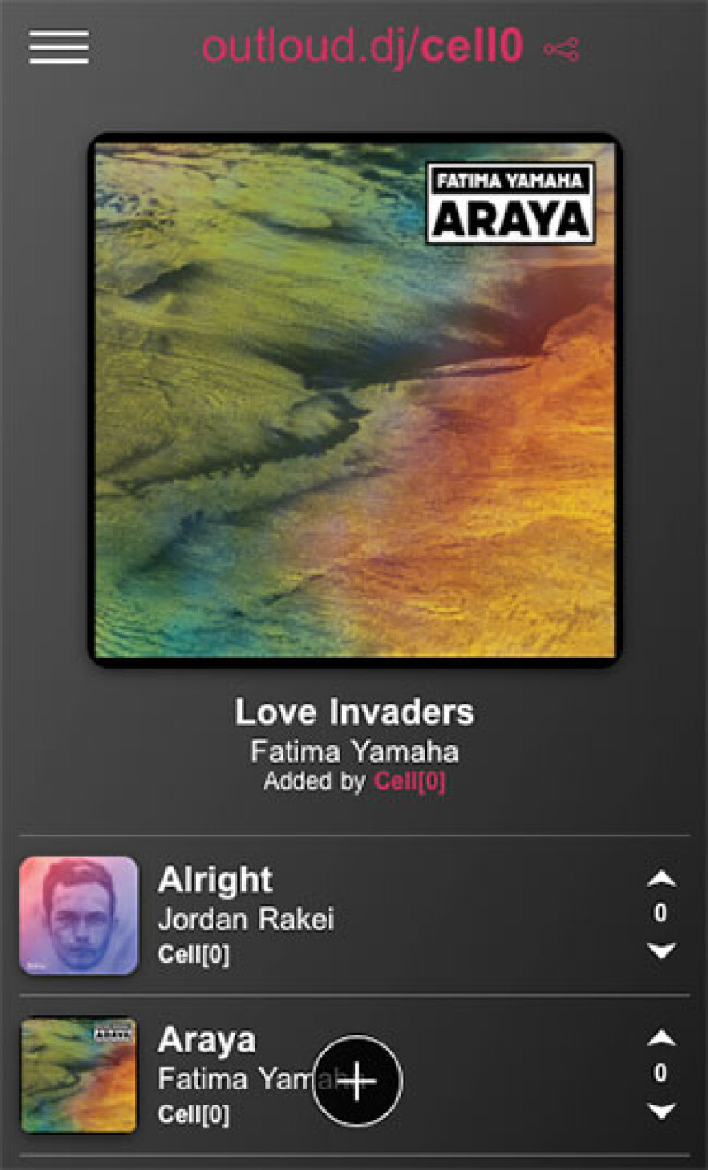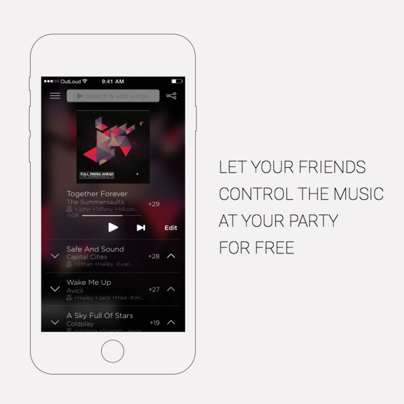 Met de app OutLoud creëer je een sociale jukebox voor op je feestjes. Door de integratie met Spotify maak je eenvoudig een afspeellijst aan. Vervolgens kunnen anderen met de app op dezelfde locatie ook de lijst bekijken. Ze kunnen real-time samen de volgorde van de lijst bepalen, door liedjes omhoog of omlaag te stemmen. Of ze voegen zelf liedjes toe te voegen uit de collectie van Spotify.