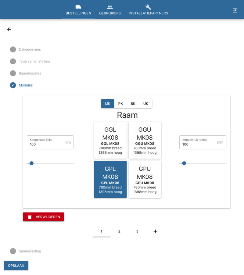 Het Admin panel fungeert alleen als tool voor medewerkers/partners van Dakkapellen Modulair. Dit zijn verkopers, installateurs, specifieke partners en resellers. Het primaire doel van de app is het genereren van een PDF met bouwtekening voor het aanvragen van een vergunning. Dit betekent dat er niet veel aandacht is gestoken in de vormgeving en UI van de app zelf.